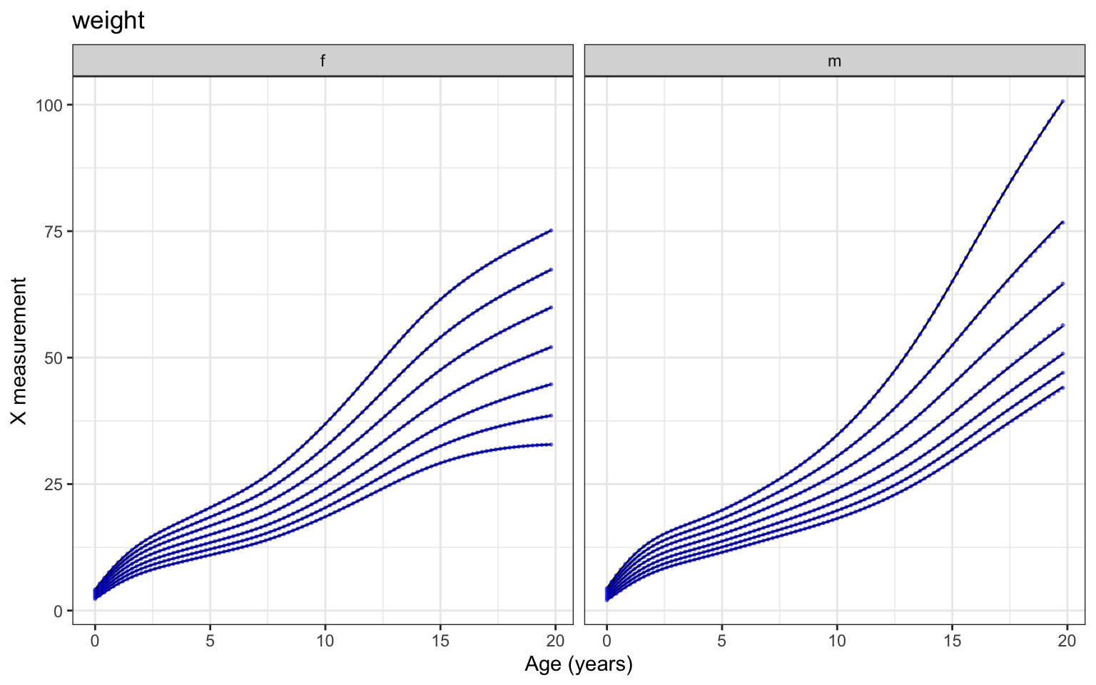 calcX = z_lms_to_x(qnorm(percentile / 100.0), L, M, S), # using the originally published LMS values