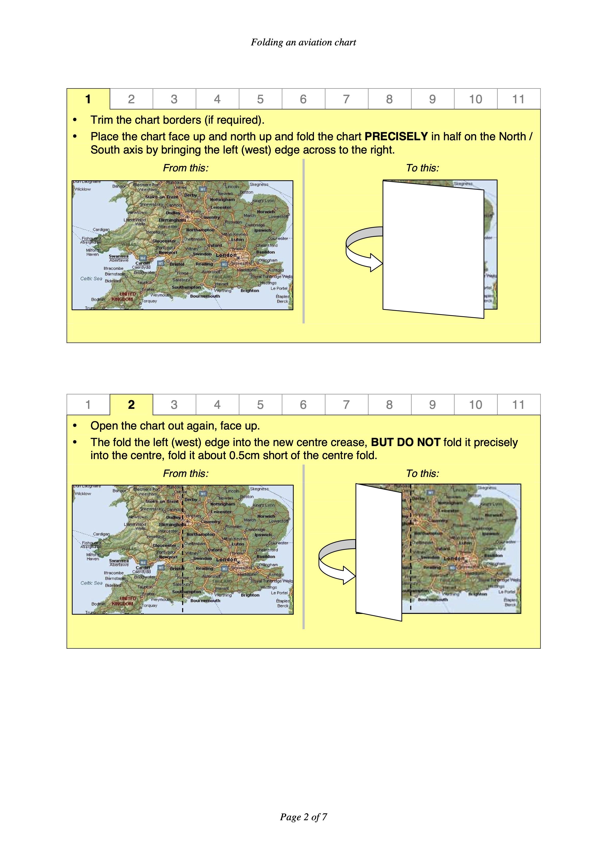 - Fold 4, 5 & 6. Open out the chart and repeat the previous process, only this time make the folds north south.